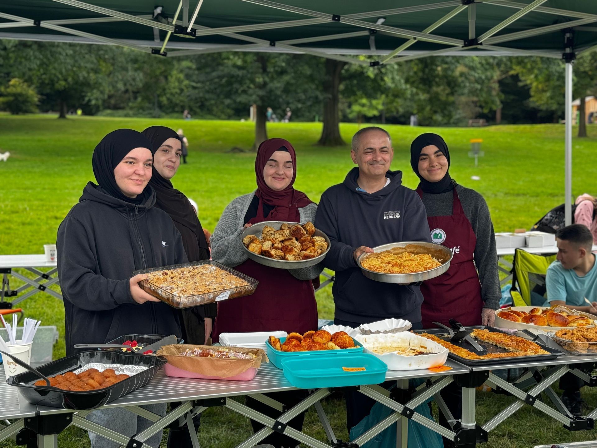 15.09.2024, Herne - Dieses Jahr fiel der Mitmachtag im Gysenbergpark mit dem Geburtstagswochenende des Propheten Muhammed (sav). zusammen. Passend zu einem Geburtstag gab es für Groß und Klein zahlreiche Geschenke. Mustafa Davulcu, ein Mitglied der muslimischen Jugend, sagte begeistert: „Ich glaube, ich habe bisher noch nie so viele Geschenke an einem Tag verteilt.“