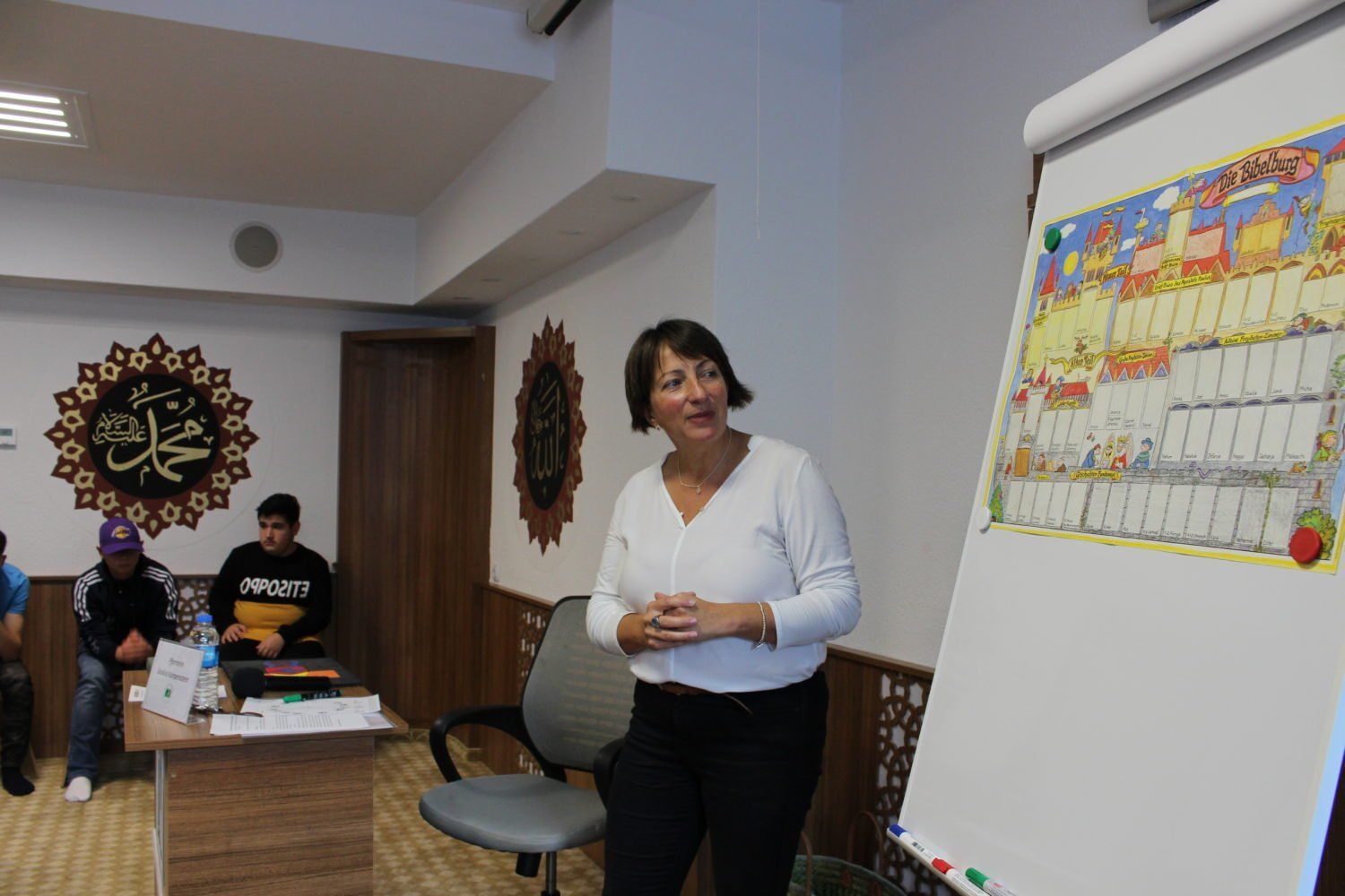 Da auch viele Flüchtlingsfamilien die die deutsche Sprache nicht ganz verstehen, anwesend waren hatte Frau Karpenstein in ihrem Vortrag bewusst auf komplexe dogmatische Themen verzichtet.
