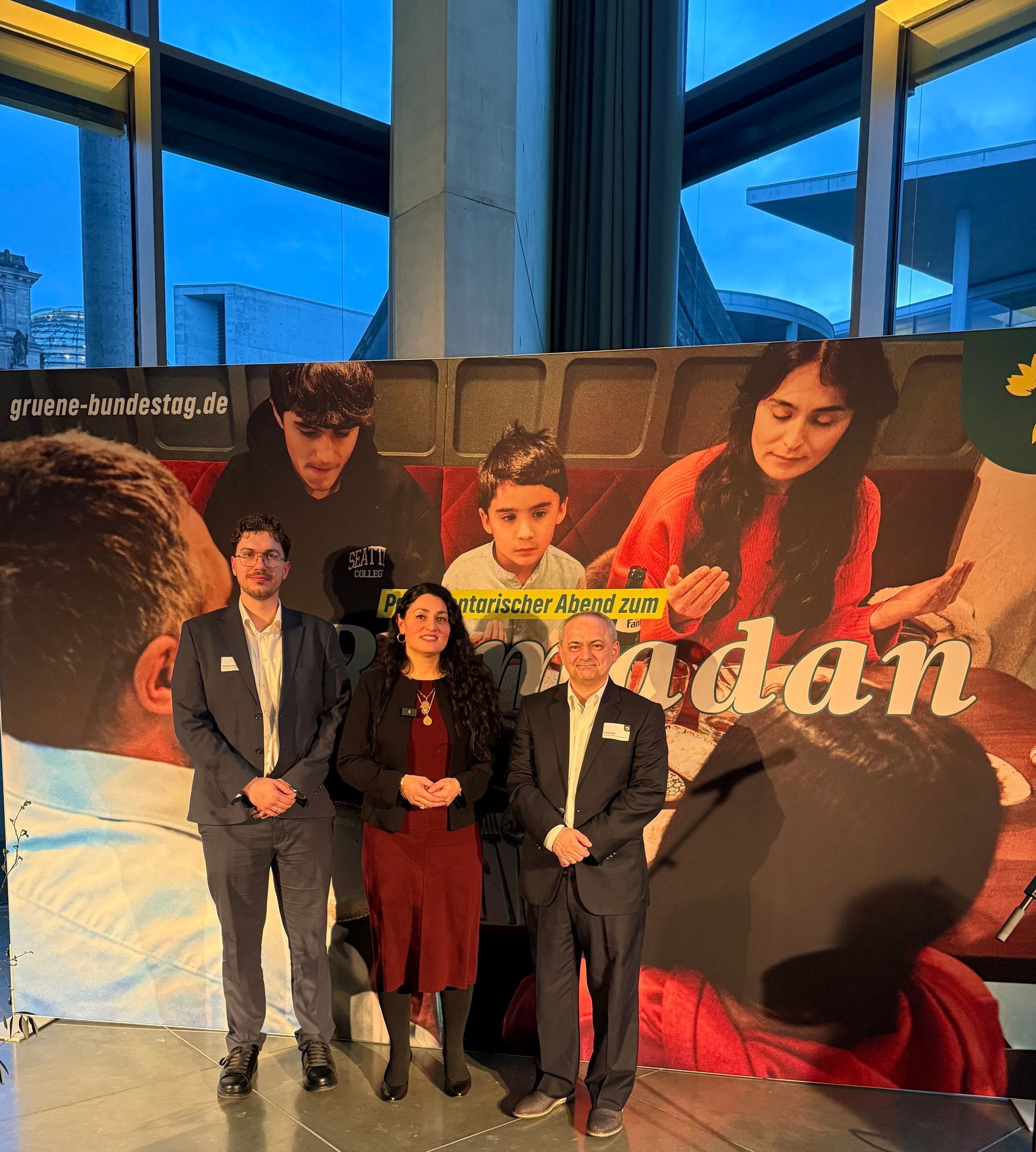 Berlin, 16.03.2026 – Im Deutschen Bundestag hat erstmals ein gemeinsames Iftar-Essen stattgefunden. Im Marie-Elisabeth-Lüders-Haus kamen Musliminnen und Muslime sowie Gäste anderer Religionen und ohne religiöse Bindung zusammen, um im Ramadan gemeinsam das Fasten zu brechen. Organisiert wurde der Abend von der Fraktion Bündnis 90/Die Grünen unter der Leitung der Bundestagsabgeordneten Lamya Kaddor. Die Veranstaltung stand für Begegnung, Austausch und ein respektvolles Miteinander. Dass ein Iftar nun auch im Bundestag stattfindet, ist ein sichtbares Zeichen für die Normalisierung muslimischen Lebens in Deutschland. Musliminnen und Muslime sind selbstverständlicher Teil dieser Gesellschaft. Unter den Gästen waren auch Tuncay Nazik und Süleyman Aydemir von der islamischen Gemeinde Röhlinghausen