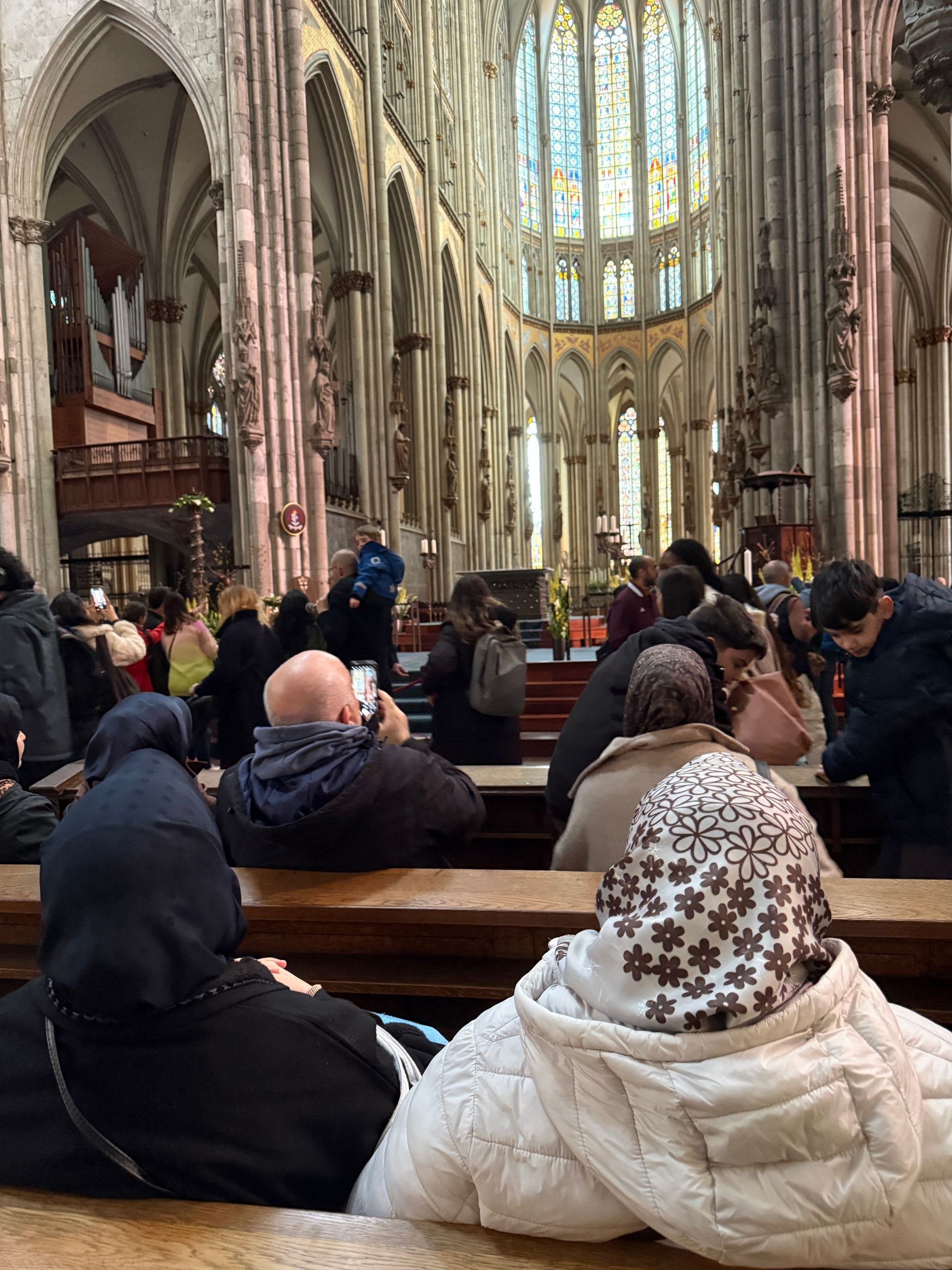 Anschließend ging es nach Köln. Die Teilnehmenden besuchten zunächst den Kölner Dom und erhielten dort Einblicke in die Grundlagen des Christentums sowie die Bedeutung von Kirchen als religiöse und gesellschaftliche Orte. Danach wurde die Zentralmoschee Köln besucht, wo zentrale Aspekte des Islams sowie die Funktion von Moscheen als Orte des Glaubens, der Begegnung und der Gemeinschaft vermittelt wurden.
