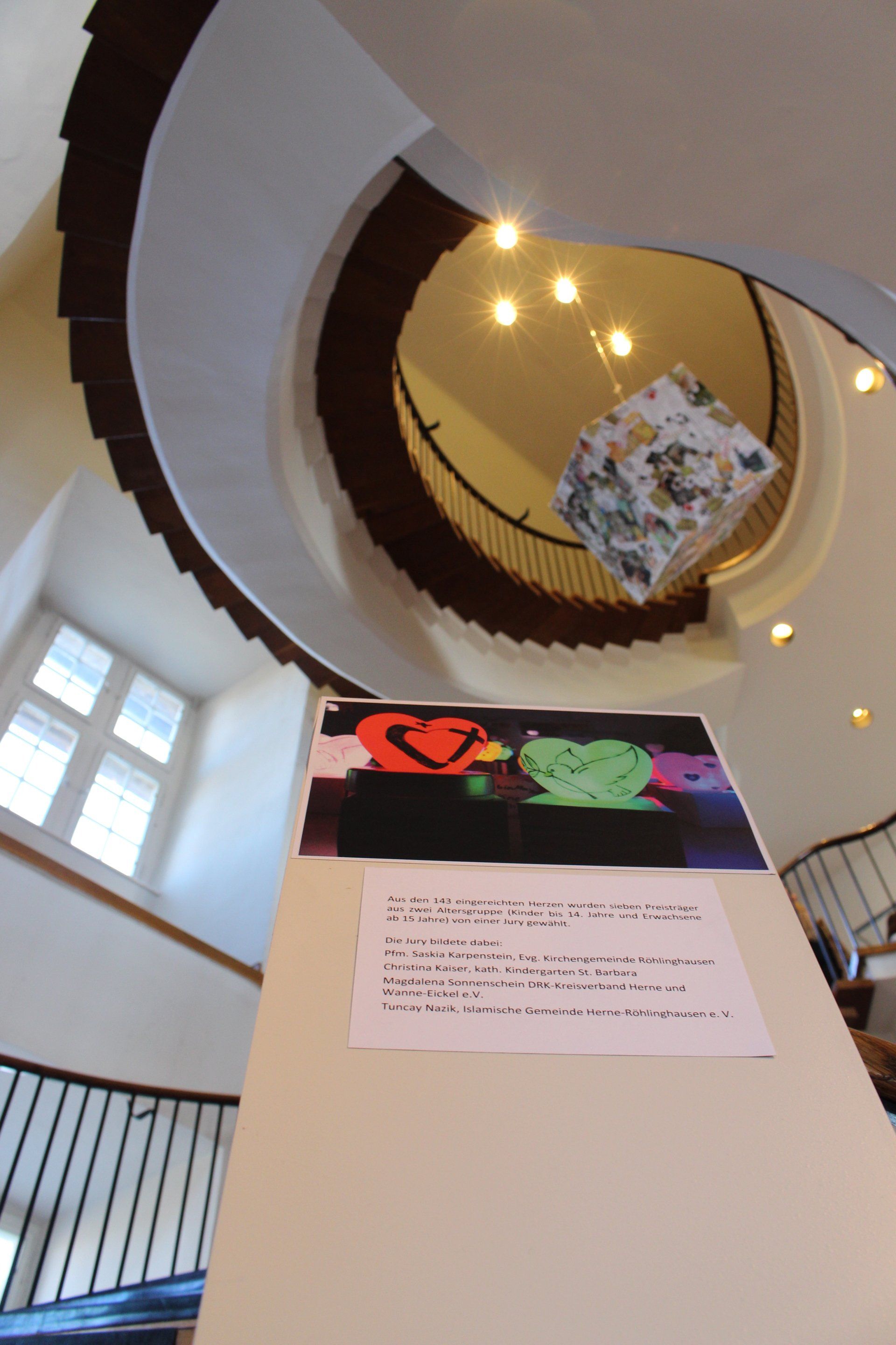 Tuncay Nazik, Jugendleiter und stellvertretender Imam der Islamischen Gemeinde Röhlinghausen, hat die Aktion initiiert „Es gibt so viele schlechte Nachrichten“, sagt Nazik, „deshalb haben wir uns überlegt, auch mal gute Nachrichten einzubringen.“ Die Aktion wurde von der Islamischen Gemeinde, aber auch von christlichen Gemeinde, von Kitas und Jugendorganisationen unterstützt. „So viel Liebe und Gefühl stehen im Wettbewerb!“ sagt Nazik. Die am schönsten gestalteten Herzen wurden prämiiert und stehen gesondert in einer Ecke des Glockenzimmers im Schloss Strünkede. Alle anderen eingesandten Herz-Objekte werden im Turmzimmer präsentiert.