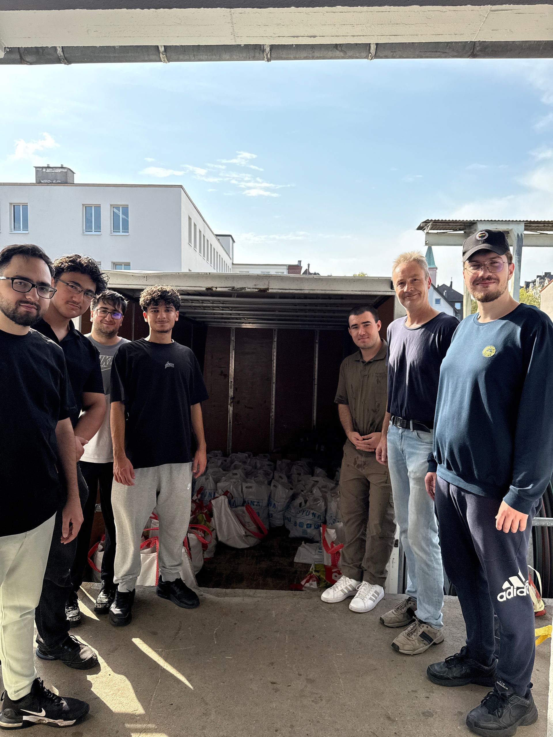 20.09.2025, Herne - Mehrere Landwirt:innen stellten der Gesellschaft Bochum-Donezk e.V. eine großzügige Spende von mehreren Dutzend Tonnen Kartoffeln zur Verfügung. Nachdem der Großteil verteilt worden war, blieben rund 750 Kilogramm übrig. Die Muslimische Jugend Röhlinghausen durfte dann die restlichen Kartoffeln weitergeben. Gemeinsam organisierten die Jugendlichen einen Lkw und packten die Kartoffeln in handliche 10-Kilo-Tüten. Über einen Aufruf in den sozialen Medien wurden Geflüchtete, Rentner:innen, Alleinerziehende und alle Menschen mit Bedarf eingeladen, sich kostenlos eine Tüte abzuholen. Die Nachfrage war groß: Innerhalb von drei bis vier Stunden waren sämtliche Tüten verteilt.