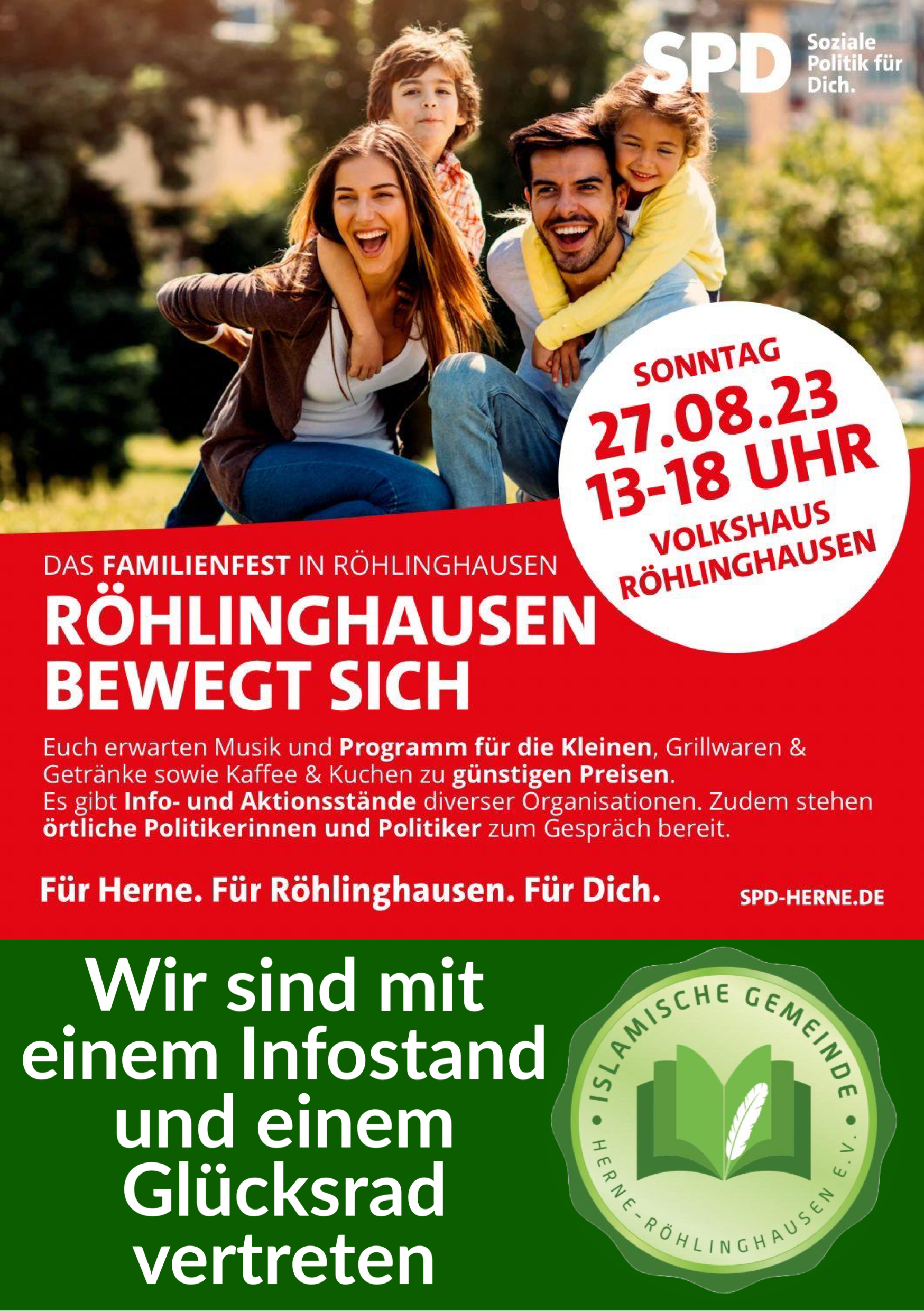 Am Sonntag, dem 27.08.2023, nahmen wir am Familienfest „Röhlinghausen bewegt sich“ der SPD Herne/Röhlinghausen mit einem Infostand und einem Glücksrad teil.