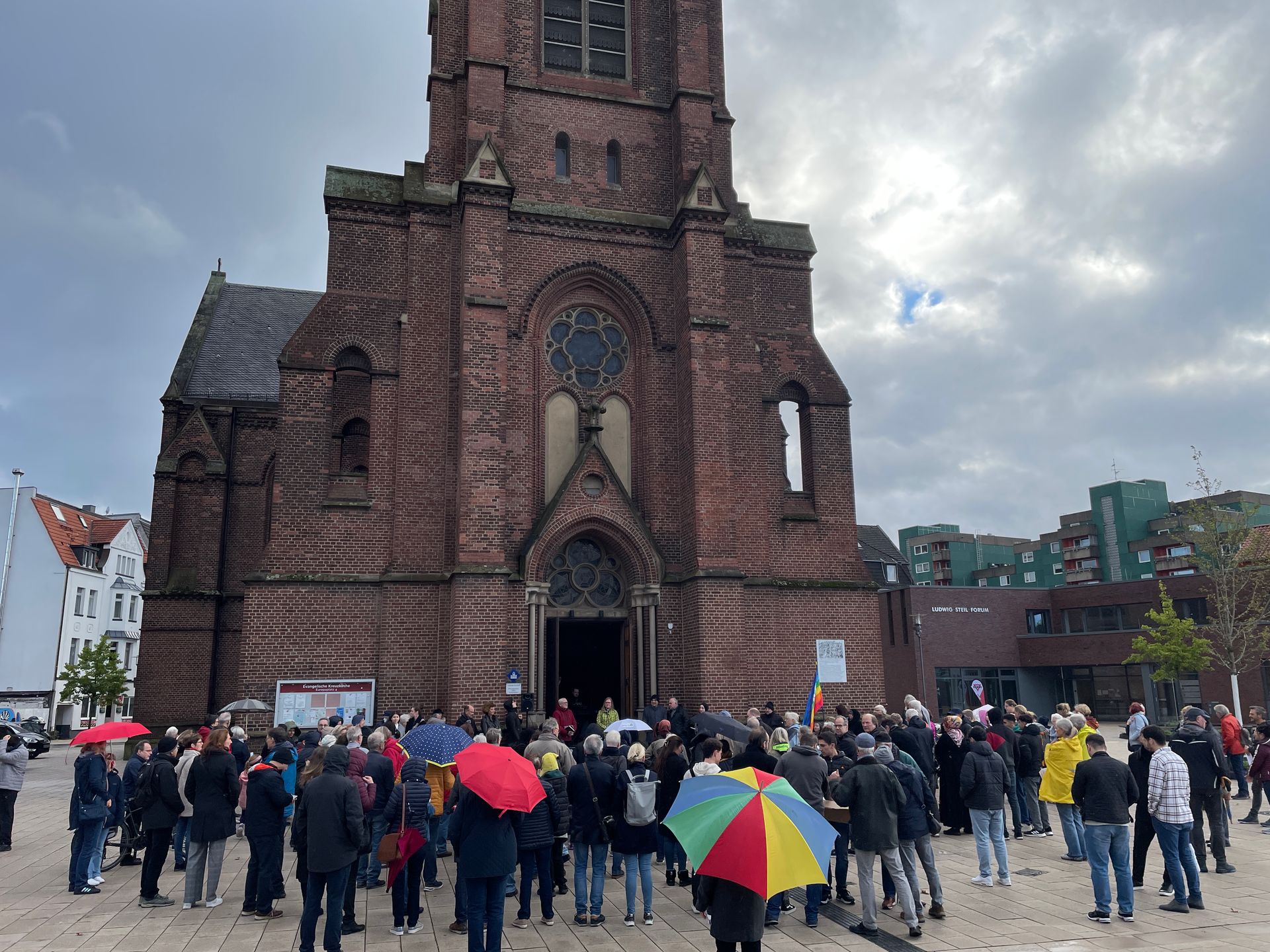 Die Veranstalter:innen, die evangelische und katholische Kirche in Herne und die Islamische Gemeinde Röhlinghausen, hatten gebeten keine Fahnen oder nationale Symbole zu schwenken. Dieser Bitte wurde ausnahmslos gefolgt.
