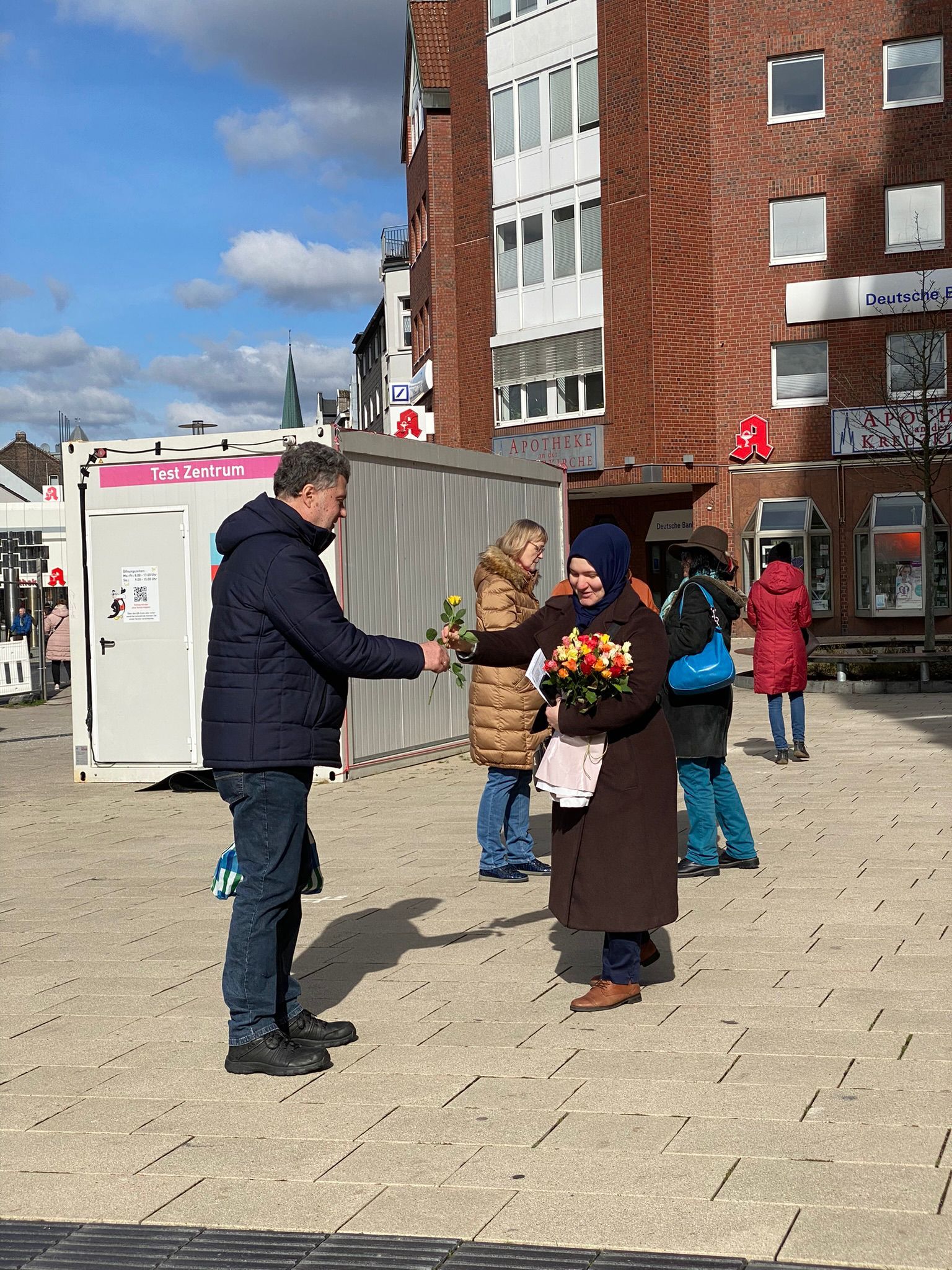 Anlässlich des Weltfrauentags wurde beim heutigen Friedensgebet über die Rechte der Frau gesprochen. Die Islamische Gemeinde überreichte den anwesenden Frauen Rosen.