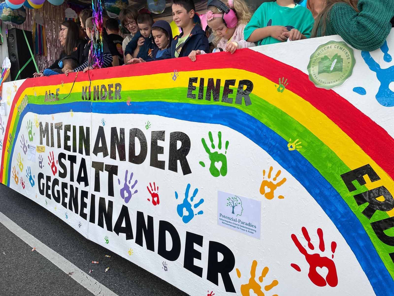 Dieses Jahr kooperierten die Islamische Gemeinde Röhlinghausen, der TV Röhlinghausen sowie die Engel ohne Grenzen e.V. und gestalteten gemeinsam einen Umzugswagen unter dem Motto: „Miteinander statt Gegeneinander - Wir sind alle Kinder einer Erde“.