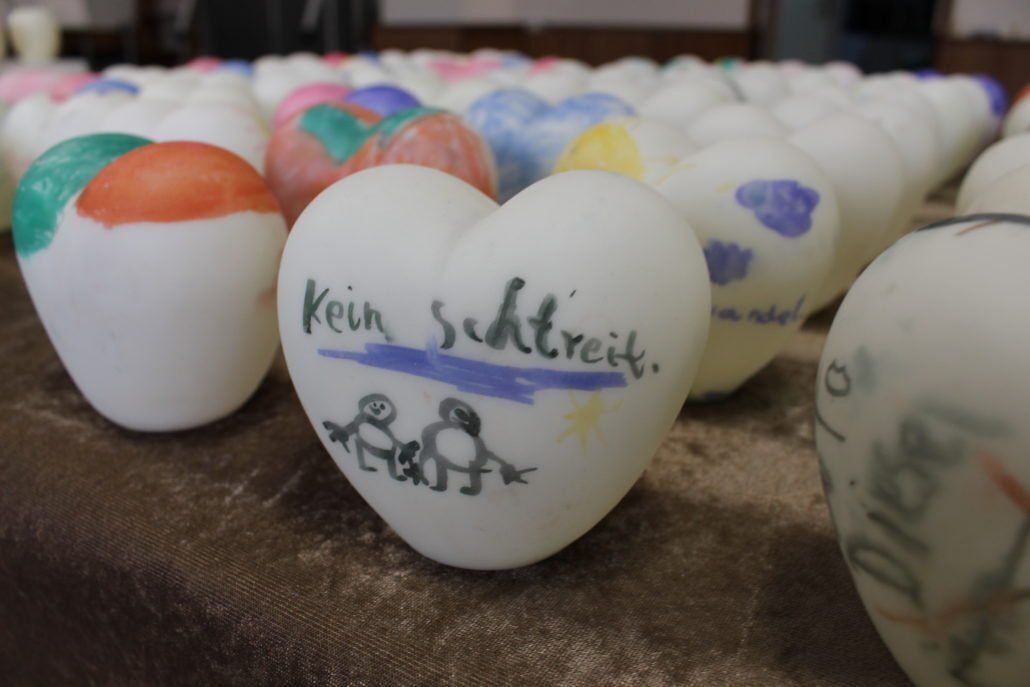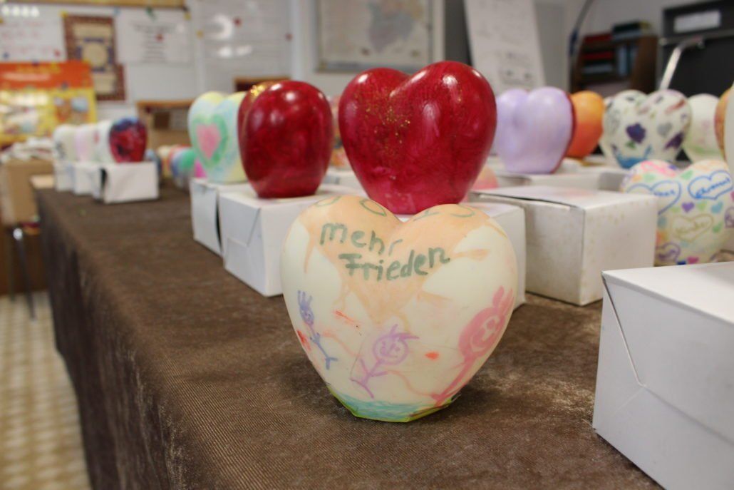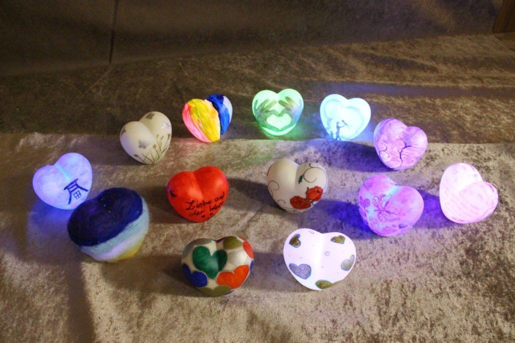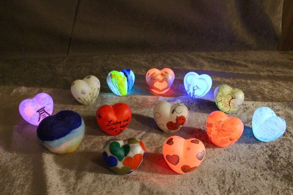 Mehr als 200 Herzen wurden bemalt oder gebastelt. Teilnehmer waren unterschiedlichen Altesr. Darunter Kindergartenkinder im Alter von 4 Jahren bis zu Senioren mit 102 Jahren.
