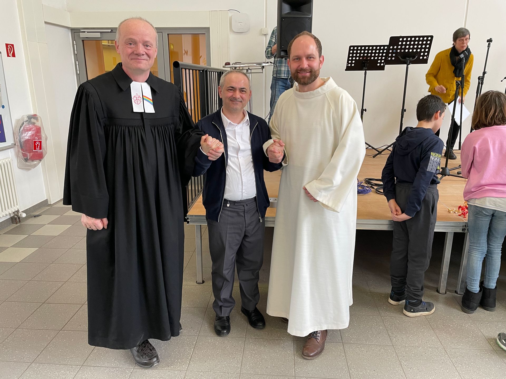Er beschreibt den Tag wie folgt: „Heute war ein besonderer Tag mit wunderschönen Kindern und Jugendlichen, mit meinen Kollegen Herr Linke von der katholischen und Pastor Möllenhoff von der evangelischen Kirche. Gemeinsam haben wir einen christlich-muslimischen Gottesdienst abgehalten.