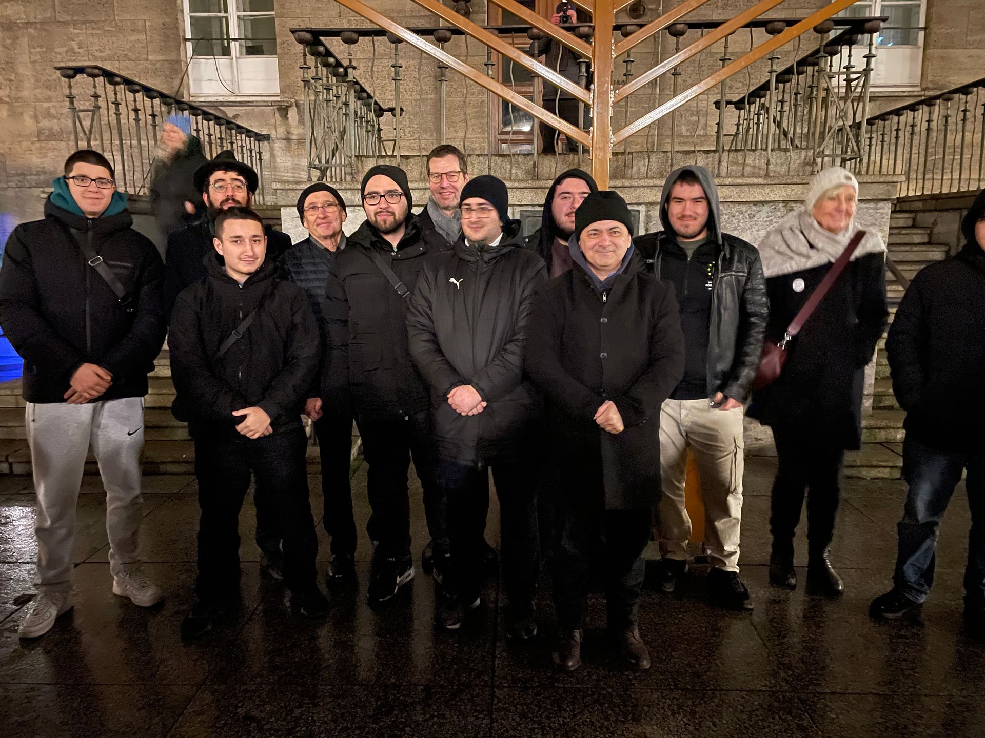 29.12.2024, Bochum - Die traditionelle Kerzenzündung zu Chanukka fand auch dieses Jahr im Innenhof des Bochumer Rathauses statt. Mit dabei waren Mitglieder der Muslimischen Jugend Röhlinghausen.