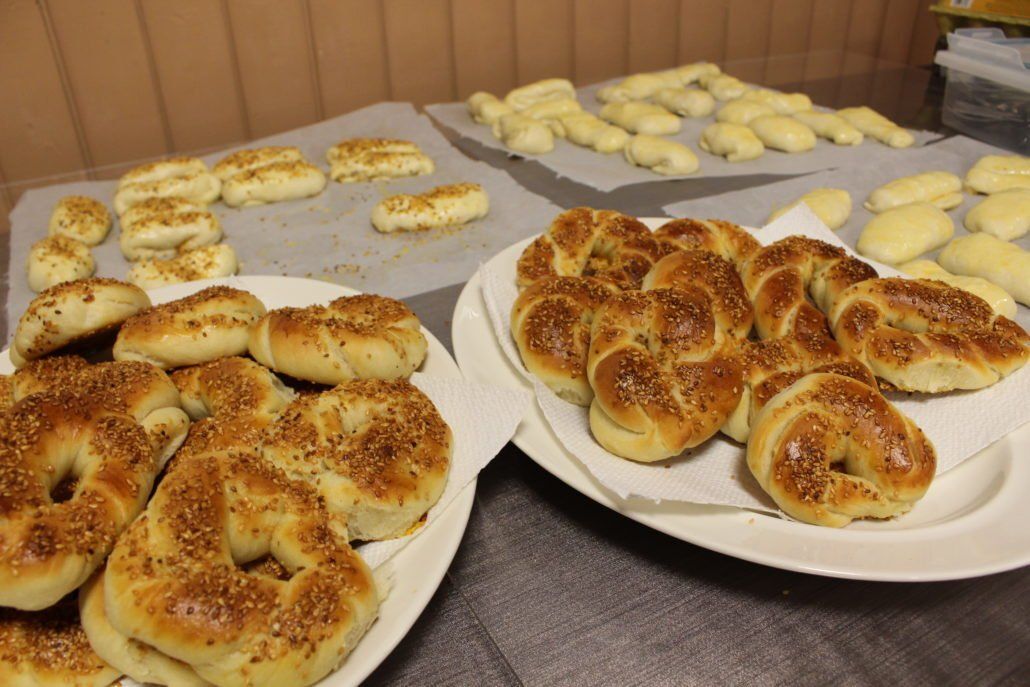 „Einfach und schnell zubereitet können die Teigwaren Börek und Simit( Sesamring). Und sind bei den Gästen immer sehr beliebt. Für Börek den Teig in kleine Bällchen formen und für Simit den Teig in Strängen formen und zum Zopf flechten." Die Einleitung durch Frau Kübra Nazik hörte sich leicht an. Jetzt waren aber die fleißigen Hände der Teilnehmerinnen dran.
