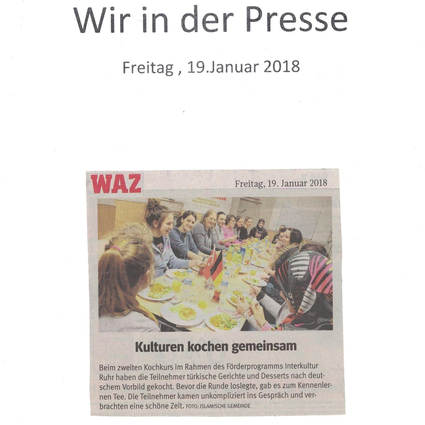 Bei dem zweiten Kochkurs die im Rahmen des Förderprogramms Interkultur Ruhr am Dienstag den 16.01.2018 in der islamischen Gemeinde Röhlinghausen stattfand, was es rappelvoll.