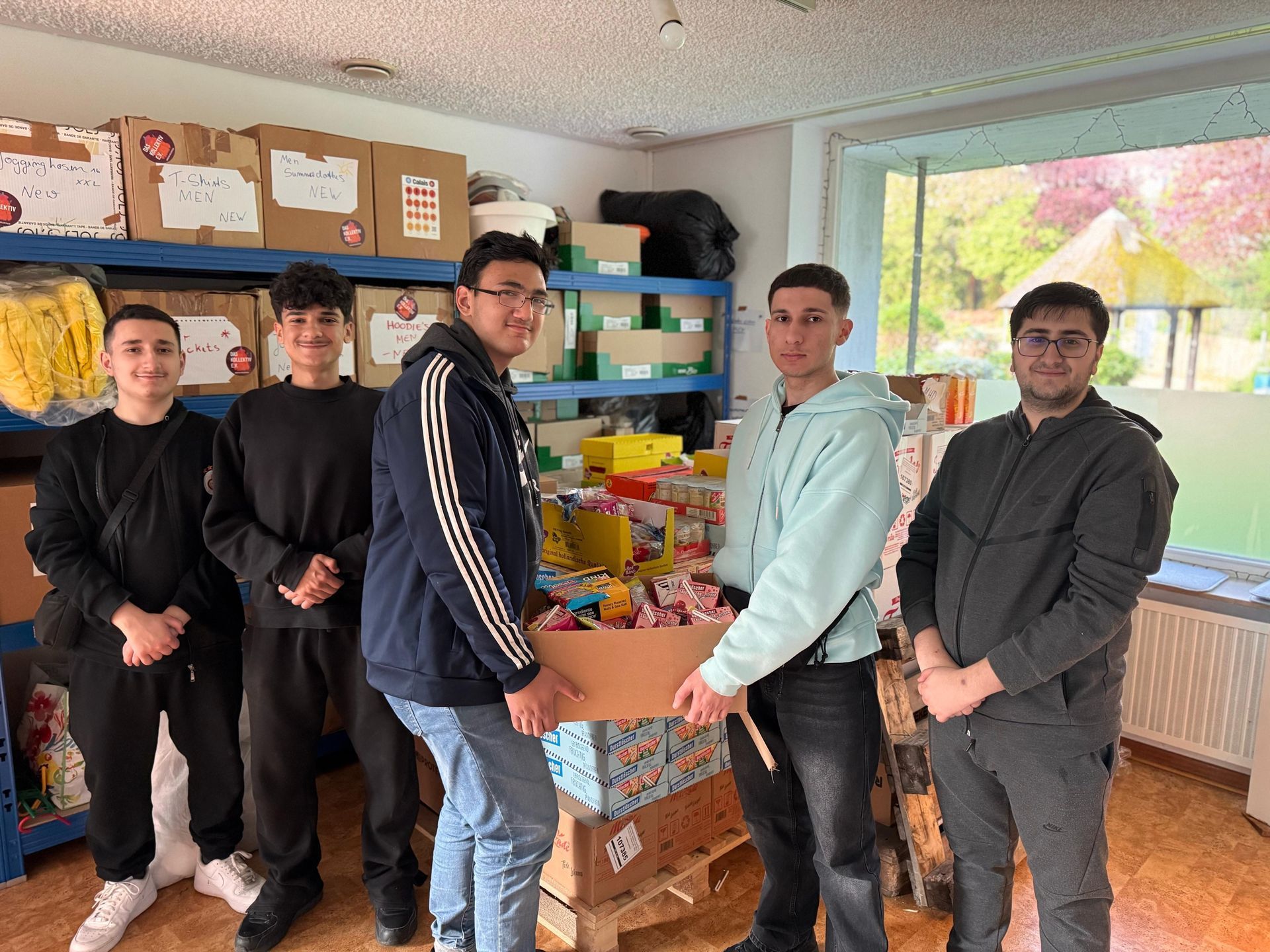 25.04.2025, Herne - Insgesamt vier Paletten Lebensmittel übergab die Muslimische Jugend Röhlinghausen an den Bochumer Verein Das Kollektiv e.V. Diese Spende kommt vor allem Geflüchteten zugute, die aktuell unter unmenschlichen Bedingungen in den Wäldern rund um Calais ausharren.