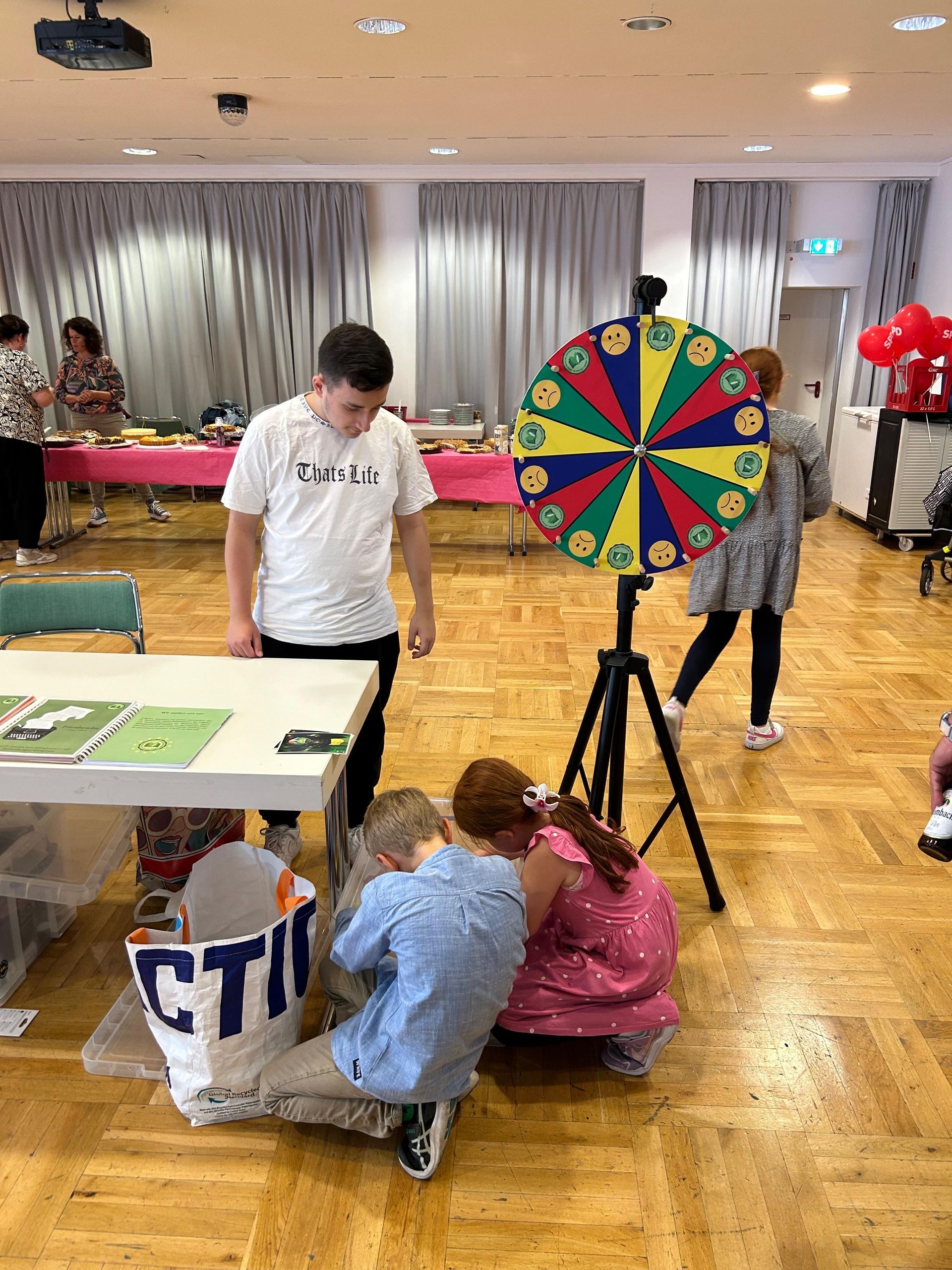 Neben Infomaterialien zur Gemeinde- sowie Kinder- und Jugendarbeit, wurden für die zahlreichen Besucher:innen auch Bücher zu den Themen Islam, Grundgesetz, Menschenrechte und Demokratie kostenlos zur Verfügung gestellt. Für die Kinder wurde das Glücksrad aufgebaut.
