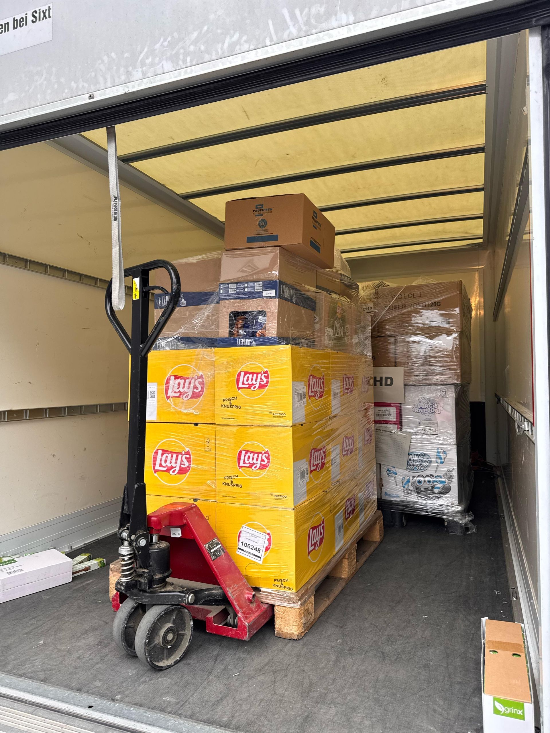 16.04.2025, Herne - Erneut übergab die Muslimische Jugend Röhlinghausen vier Paletten Lebensmittel an den Verein „Menschen ohne Bleibe“.