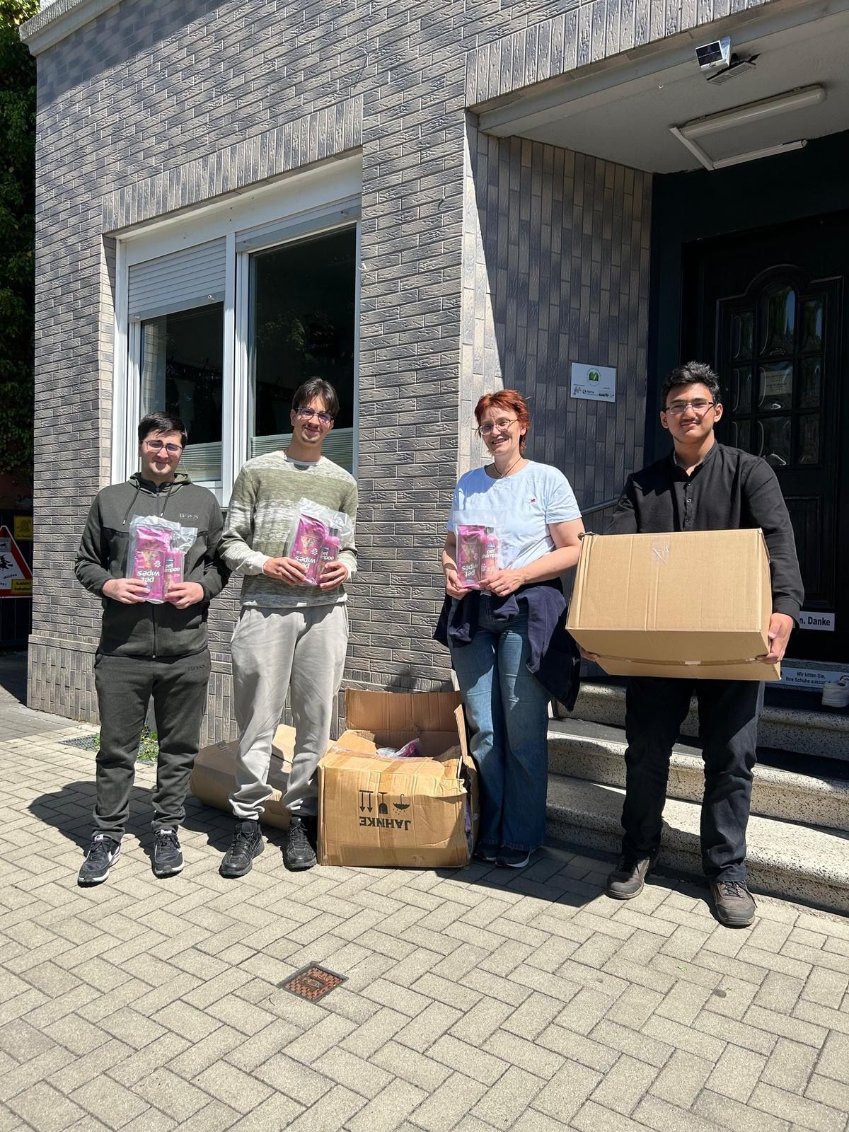 09.05.2025, Herne - Vertreter der Muslimischen Jugend Röhlinghausen übergaben Sabrina Mielke, Vertreterin des Vereins Pfotenglück Herne, vier Pakete Tiershampoo.