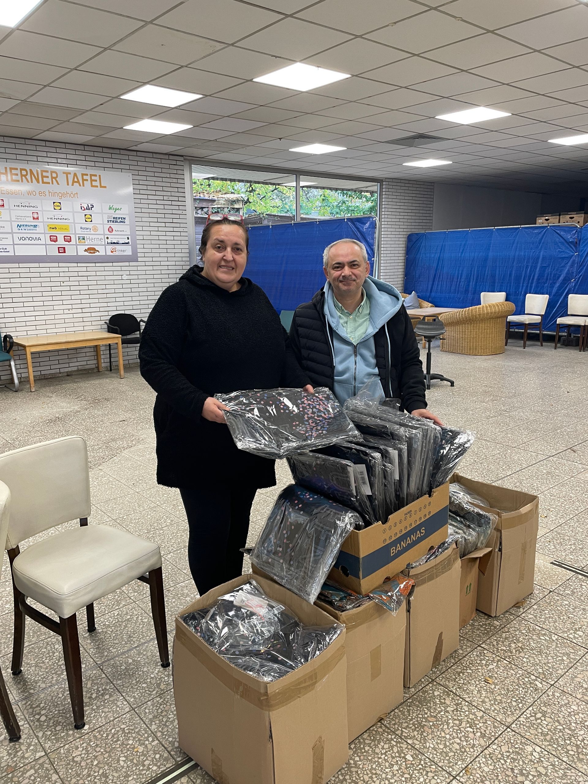 29.10.2024, Herne - Ein Großhändler stellte mehrere tausend verpackte Schals zur Verfügung. Während die eine Hälfte der Herner Tafel übergeben wurde, ist die andere für verschiedene Hilfsaktionen vorgesehen.