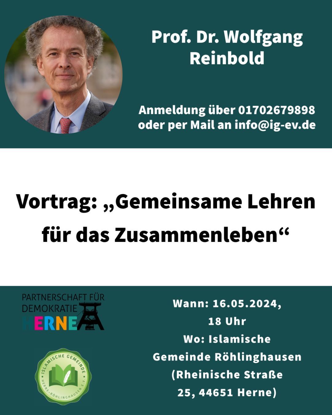 Veranstaltung: „Gemeinsame Lehren für das Zusammenleben“ mit Prof. Dr. Wolfgang Reinbold