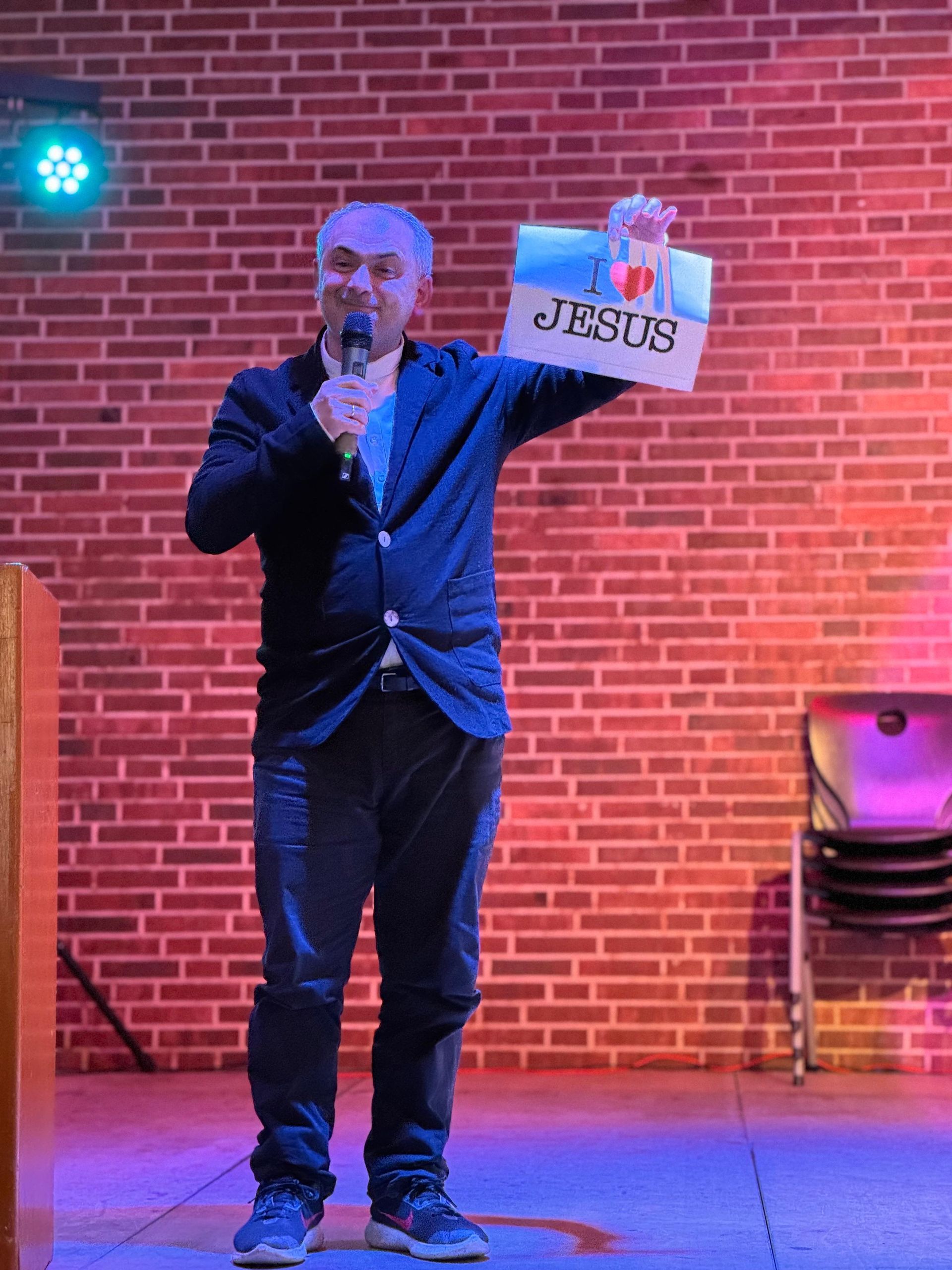 Tuncay Nazik von der Islamischen Gemeinde Röhlinghausen knüpfte mit seinem Vortrag „Isa im Islam“ daran an. Für Aufmerksamkeit sorgte das Blatt in seiner Hand mit der Aufschrift „I love Jesus“. Nazik betonte, dass Muslim:innen Isa, also Jesus, als Propheten anerkennen. Dabei ist es eines der Glaubensgrundsätze des Islam, keinen Unterschied zwischen den einzelnen Propheten zu machen. Jesus ist also genau so Prophet wie Mohammed es ist.