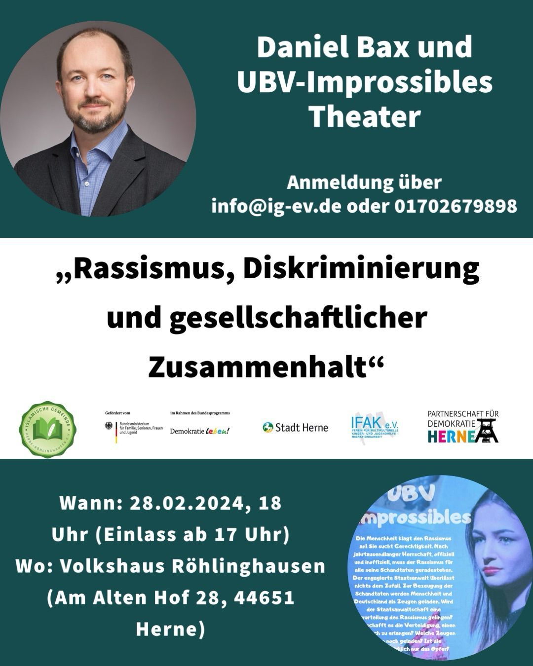 VERANSTALTUNG: „RASSISMUS, DISKRIMINIERUNG UND GESELLSCHAFTLICHER ZUSAMMENHALT“ MIT DANIEL BAX UND UBV-IMPROSSIBLES