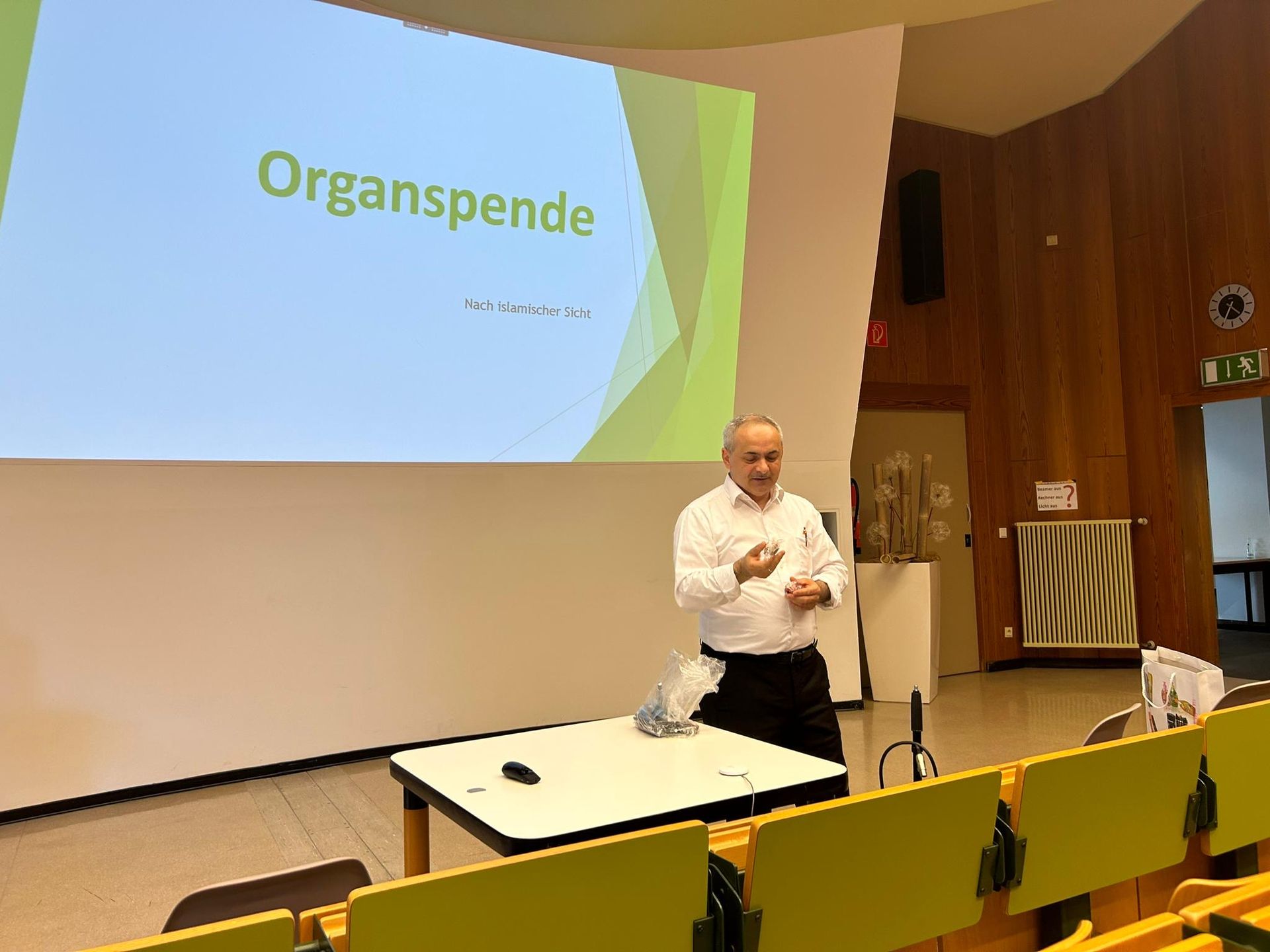 Herr Tuncay Nazik von der Islamischen Gemeinde Röhlinghausen hielt einen Vortrag über die Organspende im Islam. Er stellte fest, dass die Organspende in der muslimischen Gemeinschaft mehr Aufmerksamkeit und Aufklärung erfordere.