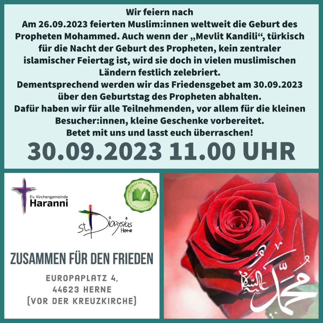 Dementsprechend werden wir das Friedensgebet am 30.09.2023 über den Geburtstag des Propheten abhalten.
